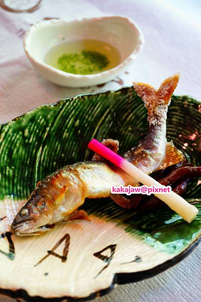 當中一道鮎塩焼き(鹽燒鮎魚)令人驚喜,甘嫩清香,沾蓼酢,開胃舒爽。