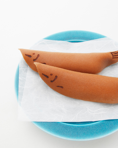 「若鮎」是跟著鮎魚步伐的夏天限定和菓子,以銅鑼燒麵糊製皮,
