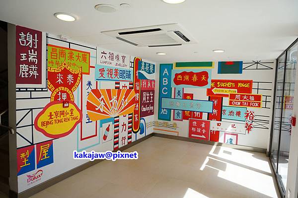 每堵牆上的壁畫都有不同的主題,還看見Dulux(多樂士油漆)的Logo。