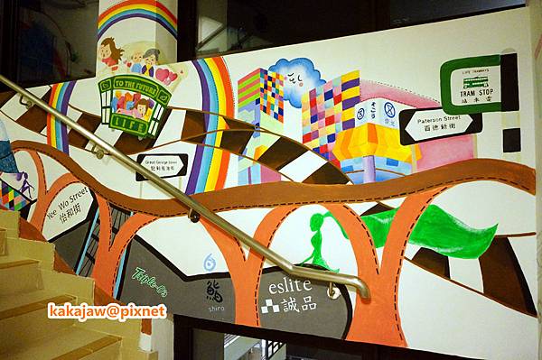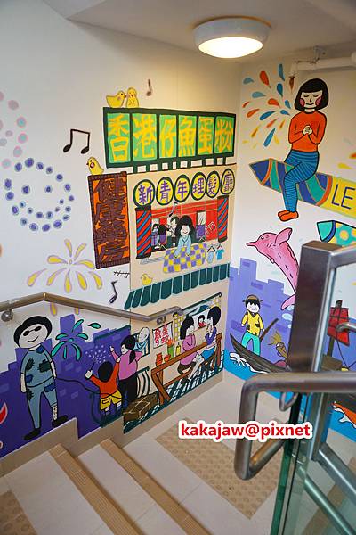 匆匆離開,直到晚上吃過媽咪的壽宴後回去,才發現走廊梯間塗滿壁畫,
