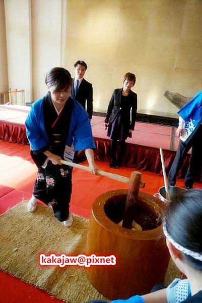 特別穿上和服並參加了大倉酒店舉行的年糕大會,