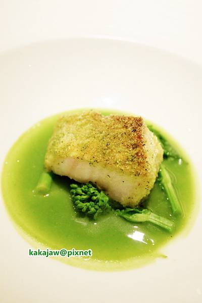 燒鱈魚配西蘭花、菜之花及蜆汁